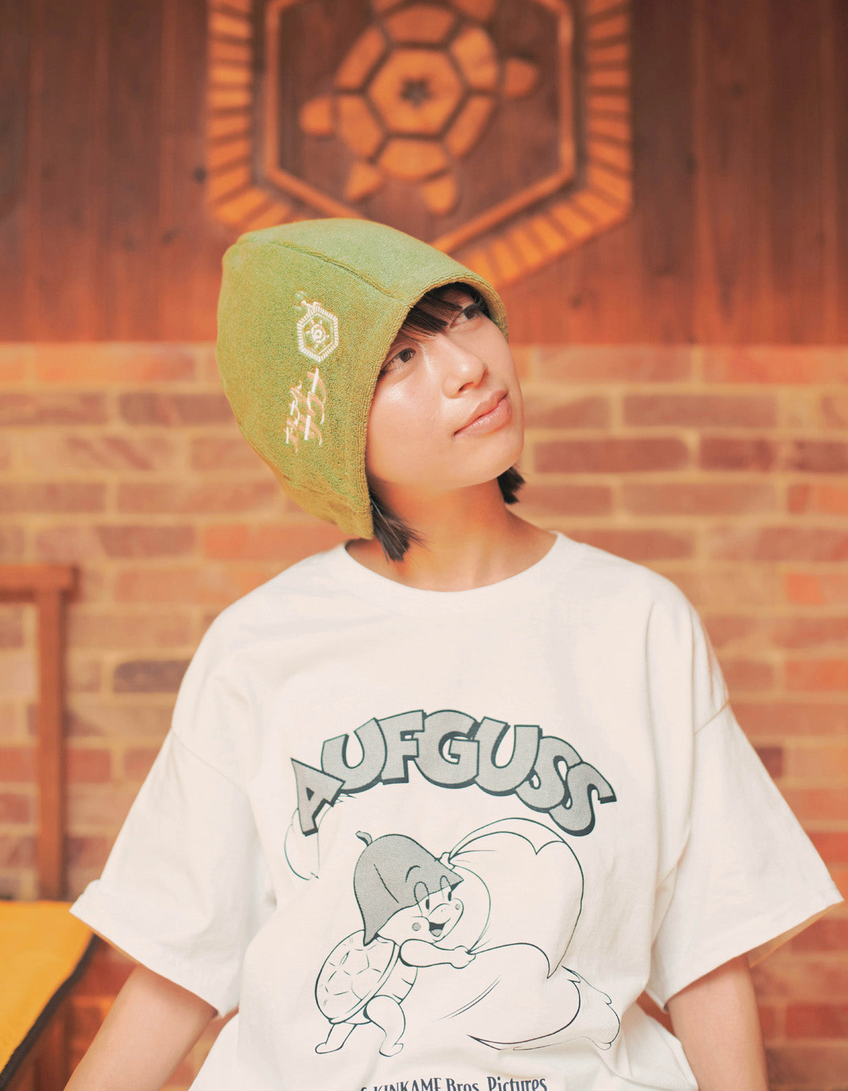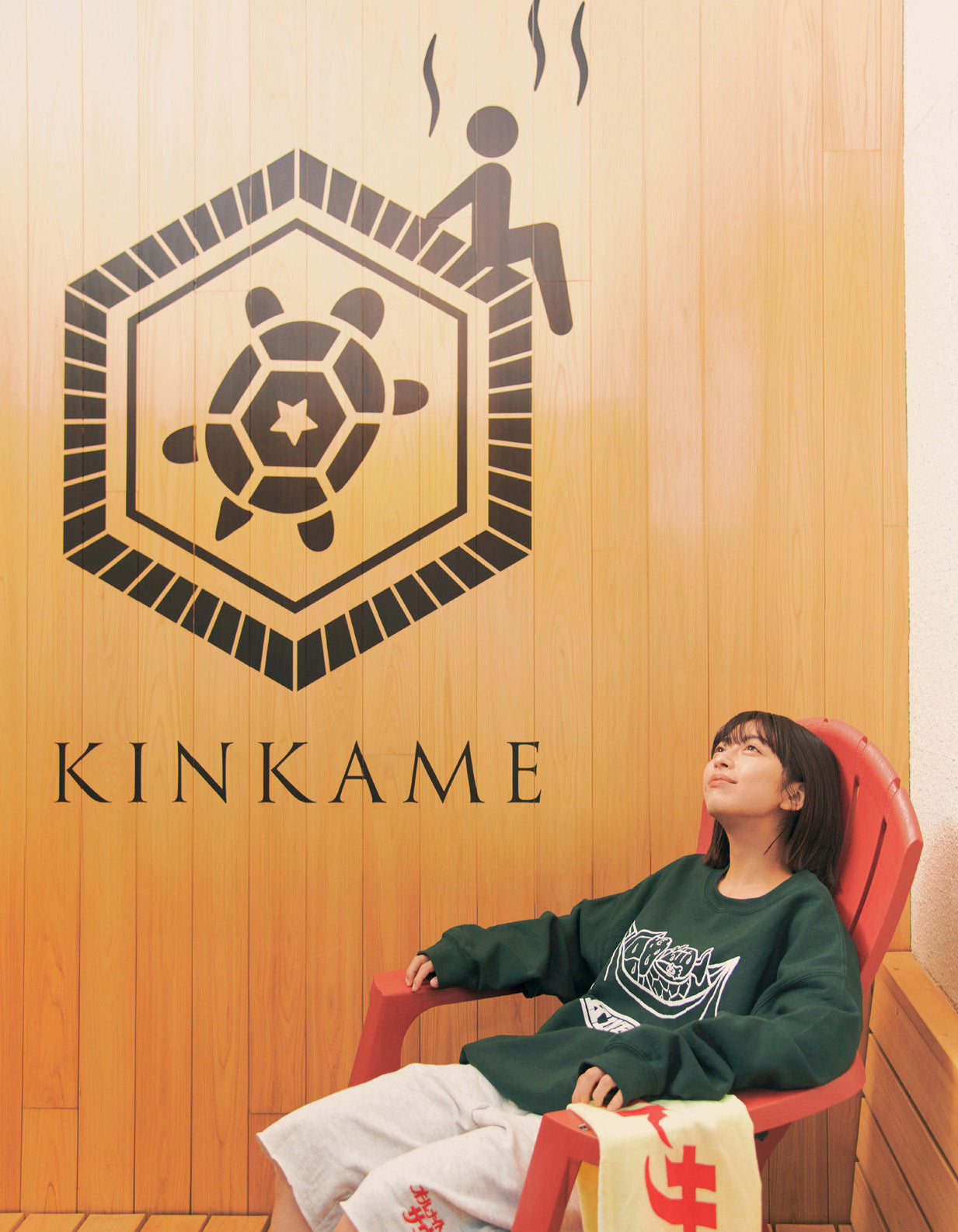 KINKAME × SAUVENIR COLLECTION 生姜サウナ「金の亀」は、ビルの1Fから3Fまでをまるごと使ったサウナ専用施設。サウナの後は、1Fの生姜焼き定食専門店で生姜づくしの“サ飯”や名物ジンジャポ。そんな金の亀とコラボしたカプセルコレクション。